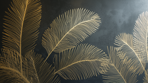WonderMuralTato Tapeta má elegantní design s zlatými palmovými listy, které dodávají dotek luxusu do každé místnosti. Jejich jemné textury a zlaté odstíny vyt...