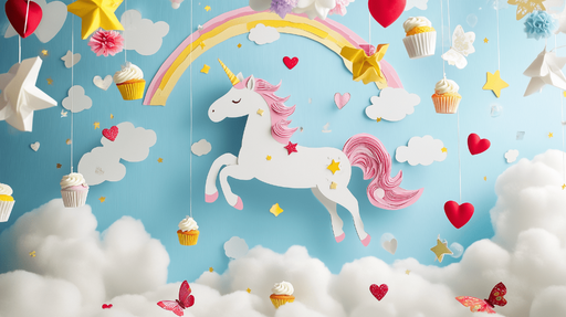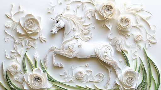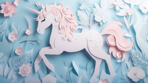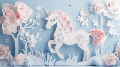 Art'loloObjevte naši jednorožčí tapetu v designu papírového vystřihování, kde je elegantní jednorožec obklopen jemnými květinami a listím. Tento umělecký v...