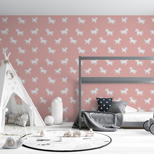 WonderMuralTento okouzlující fototapetový mural má jemný vzor bílých jednorožců, kteří se ladně pohybují po světle růžovém pozadí. Malé skvrny evokují jemnou ...