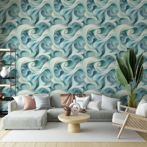 WonderMuralObjevte naši Tapetu vlny, která představuje krásný fluidní vzor jemných tvarů v odstínech modré a zelené. Texturovaný vzhled a dynamické křivky vyt...