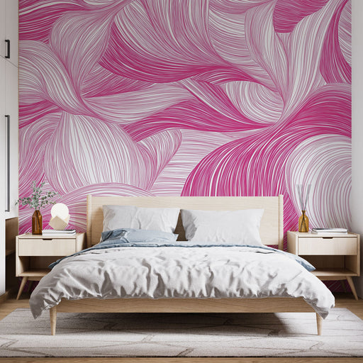 WonderMuralTento působivý fototapet má umělecký design tekutých vzorů v odstínech růžové a bílé, vytvářející atmosféru, která je jak moderní, tak elegantní. J...