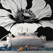 Tato fototapeta vyniká moderním a minimalistickým designem s elegantní ilustrací stylizovaného květu v černobílém provedení. Silný kontrast mezi černým pozadím a jemnými detaily květu vytváří poutavý vizuální efekt, který upoutá pozornost každého.