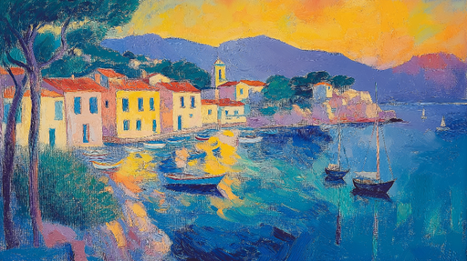 Zobrazit celý detailNástěnná tapeta Středomořská krajina | Živé barvy přístavu za soumraku