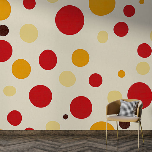 WonderMuralTato tapeta s výrazným designem barevných kruhů na krémovém pozadí vytváří radostnou a dynamickou atmosféru. Kruhy se liší velikostí a odstíny, sah...