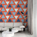 Objevte naši geometrickou tapetu s prolínajícími se trojúhelníkovými vzory v odstínech modré, červené a bílé. Tento dynamický a barevný design přináší moderní a energickou atmosféru do vašeho prostoru, ideální pro moderní kancelář nebo obývací pokoj.