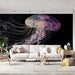 Tato úchvatná fototapeta představuje jemnou medúzu, zdobenou živými odstíny růžové a lilové, která elegantně plave na černém pozadí. Její jedinečný design evokuje fluiditu a lehkost, přinášející umělecký a moderní dotek do vaší interiérové výzdoby.