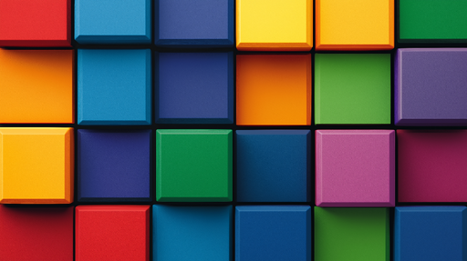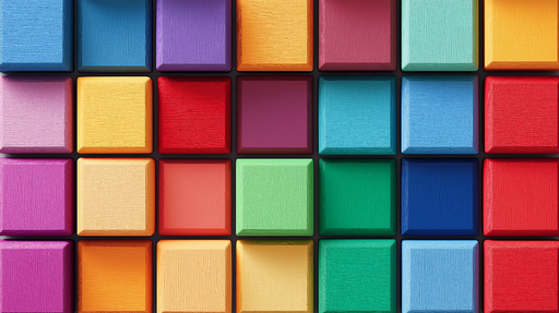 Zobrazit celý detailTapeta v barvách kostek | Dynamická kompozice vícebarevných kostek