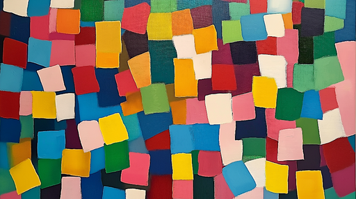 WonderMuralTato tapeta s výrazným vzorem barevných čtverců uspořádaných harmonicky, každý s pečlivou texturou pro poutavý vizuální efekt. Jasně zářivé odstíny...