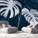 Tapeta tropická modrá teal | Elegantní listy monstery na tmavém pozadí