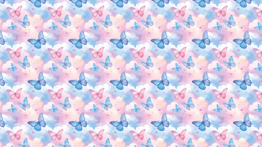 WonderMuralNáš okouzlující Tapete má jemný vzor barevných motýlů plujících mezi pastelovými mraky. Odstíny růžové, modré a fialové vytvářejí jemnou a snovou a...