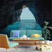 Tato tapeta evokuje fascinující mořskou jeskyni a nabízí jedinečný pohled na klidné turkyské vody. Kontrast mezi temnotou skal a světlem pronikajícím skrz otvor vytváří poutavou atmosféru, příznivou pro snění.
