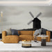 Tato nádherná tapeta zobrazuje siluetu ikonického mlýna na kopci, zachycenou v odstínech černé a bílé pro dramatický efekt. Pohyb křídel mlýna, zasazený proti oblačné obloze, vyvolává atmosféru klidu a rustikálního kouzla. Tento design je ideální pro přidání doteku autenticity a charakteru vašim interiérům.