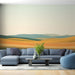 Objevte naše nástěnné tapety inspirované prériemi, zobrazující klidnou krajinu zlatých polí posetých květinami. Teplé odstíny oranžové a žluté se harmonicky spojují se zelenými kopci v pozadí, vytvářejí uklidňující a přírodní atmosféru.