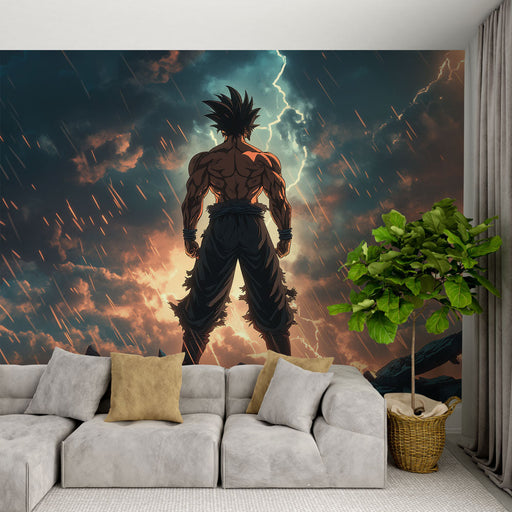 WonderMuralTato poutavá tapeta znázorňuje manga hrdinu s futuristickým designem, ozbrojeného elektrickou zbraní, která vydává úchvatný zářící světlo. Úhlovité...