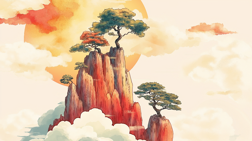 WonderMuralObjevte náš vznešený fototapetový obraz zobrazující inspirativní horskou krajinu s kamennými skalami v odstínech červené a majestátními stromy stoj...