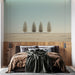 Objevte naši tapetu znázorňující minimalistickou krajinu se čtyřmi štíhlými stromy, stojícími na mírném kopci. Světlé pozadí s uklidňujícími odstíny modré vytváří klidnou a přirozenou atmosféru, která je ideální pro ty, kteří chtějí do svého interiéru vnést elegantní dotek.