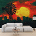 Tato okouzlující tapeta představuje siluetu větrného mlýna na pozadí nádherného západu slunce. Živé odstíny červené a oranžové se mísí a vytvářejí atmosféru, která je jak dramatická, tak okouzlující, a proměňuje jakoukoli místnost v teplý a nezapomenutelný prostor.