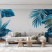 Objevte naši tapetu v modrozelené barvě zdobenou nádherným vzorem tropických listů. Různé odstíny modré dodávají vašemu interiéru živý a moderní nádech. Odvážný a dynamický design s ručně malovanými listy evokuje letní a osvěžující atmosféru.