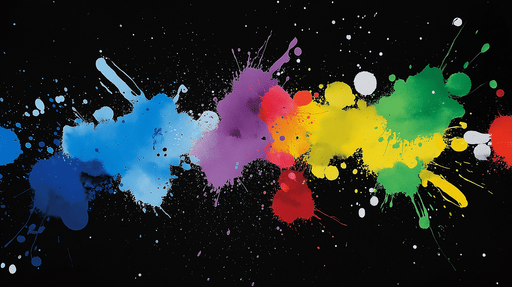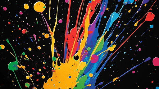 Zobrazit celý detailTapeta paint-splatters | Výbuch jasných barev na černém pozadí