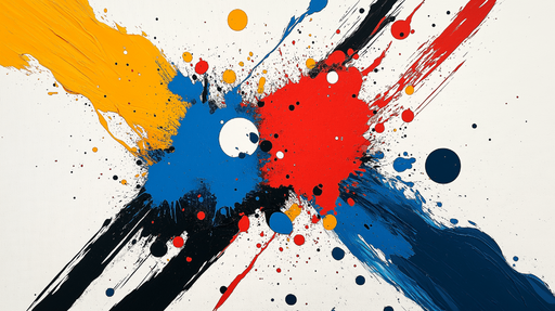 WonderMuralTato dynamická tapeta obsahuje sadu barevných cákanců v živých barvách jako žlutá, červená, modrá a černá, které se umělecky rozprostírají na čistě...