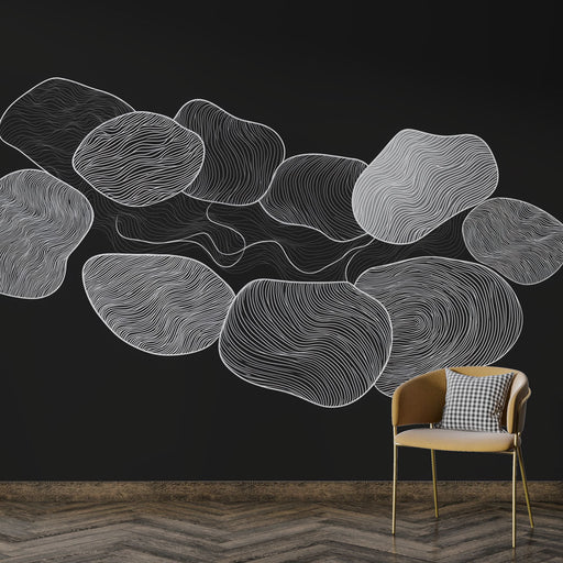 WonderMuralFototapet představuje moderní design s abstraktními organickými tvary nakreslenými bílými linkami na černém pozadí. Vlnění a rafinované kontury při...