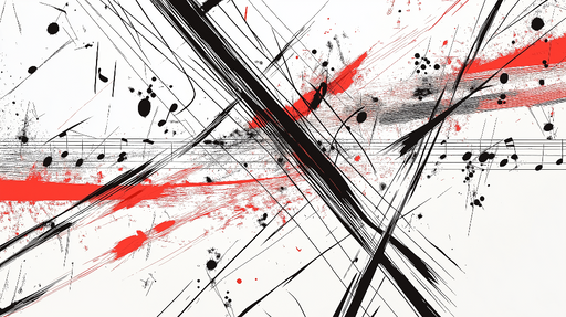 Zobrazit celý detailTapeta hudební | Abstraktní design s notami a červenými skvrnami