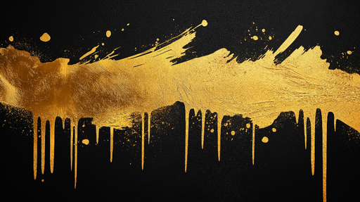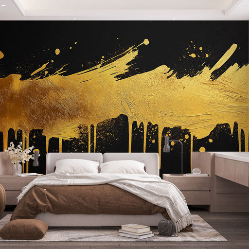 WonderMuralTato tapeta má odvážný abstraktní vzor s lesklým finišem v zlaté barvě, který kontrastuje s hlubokým černým pozadím. Skvrny a zlaté kapky vytvářejí...