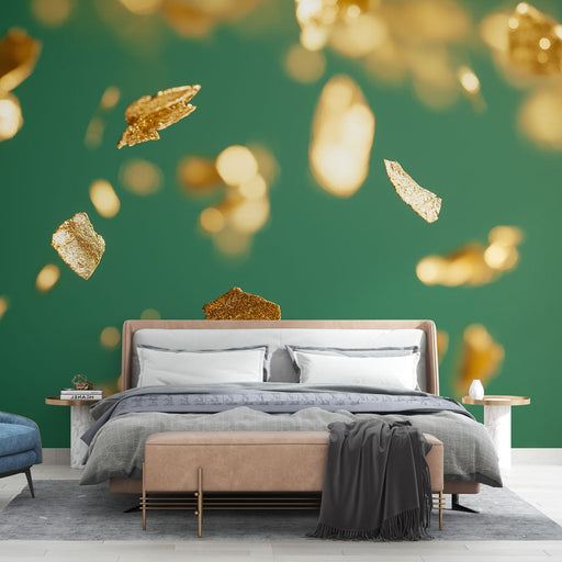 Zobrazit celý detailNástěnná tapeta nebo | Jasné zlaté výbuchy na zeleném pozadí