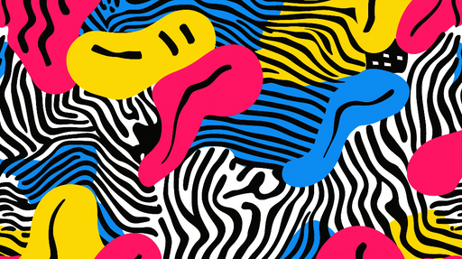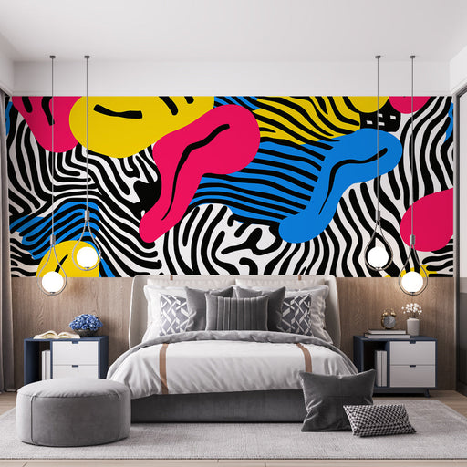 WonderMuralBarevný abstraktní vzor Tento tapetový mural má odvážný abstraktní vzor s černými a bílými čarami připomínajícími pruhy zebry, kontrastující s orga...