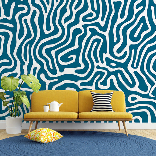 WonderMuralTato tapeta má abstraktní vzor ve formě organických bludišť s nepravidelnými a fluidními křivkami. Bílé čáry dokonale kontrastují s hlubokým modrým...