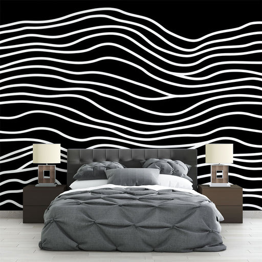 WonderMuralTento fototapet hraje na odvážný kontrast hluboké černé a křivolaké bílé linie. Křivky vytvářejí hypnotický vizuální efekt, který napodobuje jemné ...