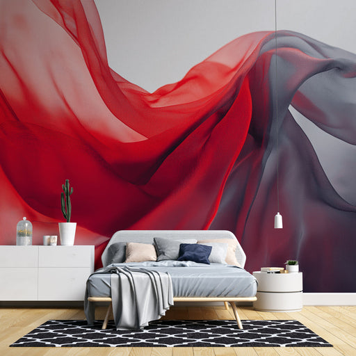WonderMuralTato ilustrace představuje vlnitou dynamiku, kde se syté odstíny červené míchají s nuancemi šedé, evokující jemnost pohybující se látky. Textura př...