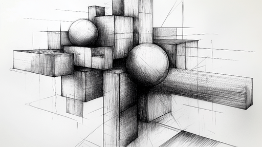 Zobrazit celý detailNástěnná tapeta | Kompozice kubických a sférických tvarů