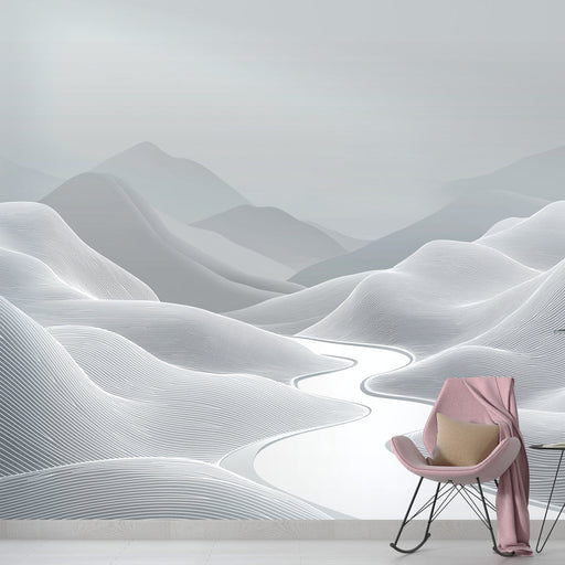 Tapeta s krajinnými vlnami | Abstraktní motivy v odstínech šedé