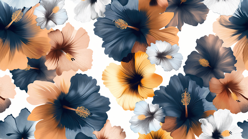 Tapeta květy ibišku | Odstíny mědi a královské modré