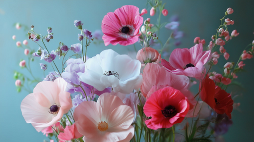Zobrazit celý detailNástěnná tapeta | Barevná kytice sasankových květů