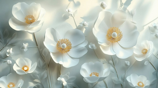 Tapeta květinová | Bílé květy v reliéfu