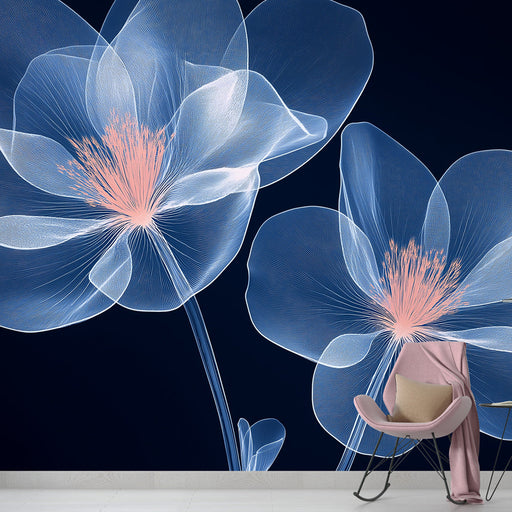 WonderMuralObjevte naše krásné fototapety s průsvitnými květinami s jemným a čistým designem. Jemné a lehké obrysy květin spolu s jemnými odstíny růžové a mod...