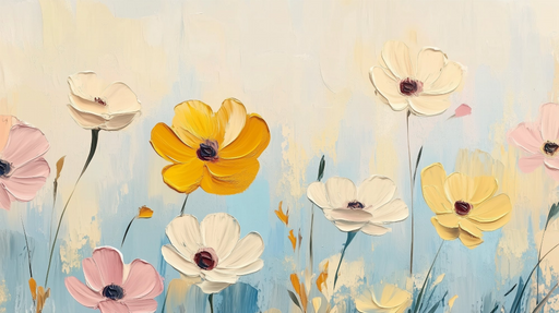 Zobrazit celý detailNástěnná tapeta květinová | Pastelová malba s barevnými květy