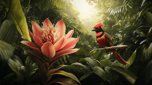 Art'lolo```html Objevte naši exotickou tapetu, která zachycuje krásu živého tropického květu a ptáka s pestrobarevnými peřím. Tento ponořující se design př...