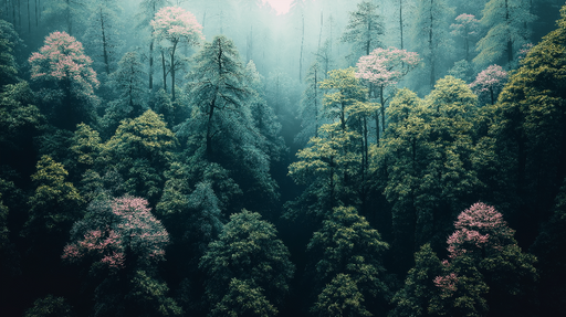 WonderMuralNáše tapety evokují mystický les při východu slunce, kde mlhavá atmosféra odhaluje majestátní stromy s různými odstíny zelené. Doteky jemné růžové ...