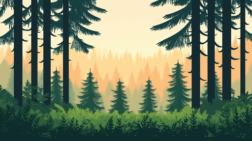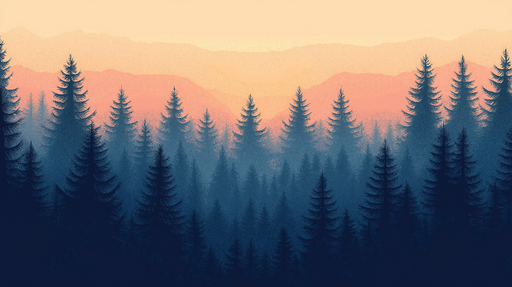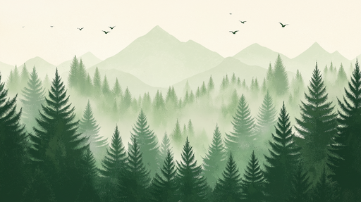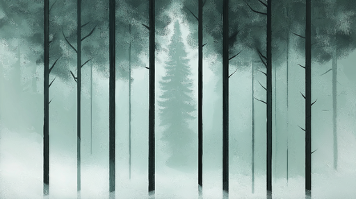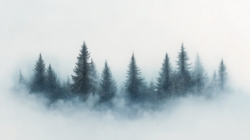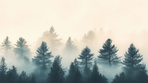 Zobrazit celý detailTapeta mlhavý les | Uklidňující ilustrace jehličnanů v mlhou obklopené krajině
