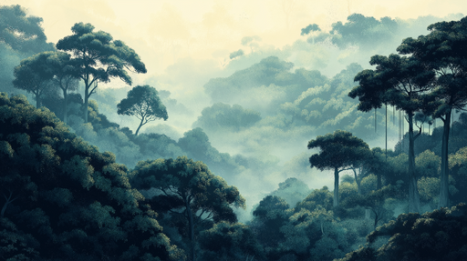 Zobrazit celý detailTapeta mlhavý les | Bujné stromy a klidná atmosféra