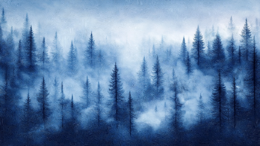 WonderMuralTento tapet odhaluje krásnou krajinu mlhavého lesa, kde siluety jehličnanů majestátně vystupují skrz hustou mlhu. Odstíny modré a šedé vytvářejí kl...