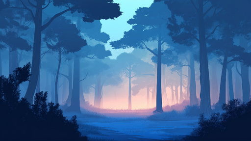 Zobrazit celý detailTapeta mlhavý les | Snová krajina s modravými odstíny a siluetami stromů