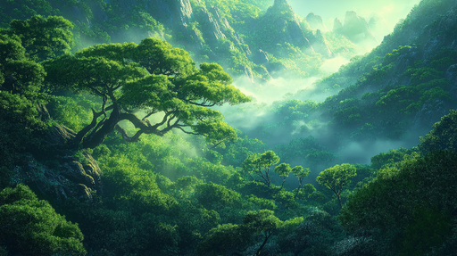 Zobrazit celý detailTapeta mlhavý les | Bujná a okouzlující krajina s majestátními stromy