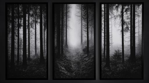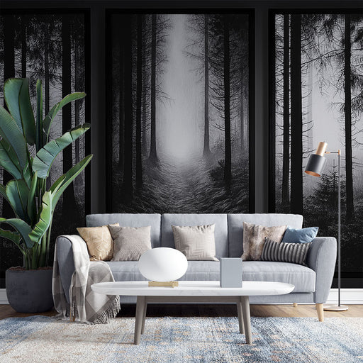 WonderMuralNáš původní Tapete má tajemnou lesní krajinu ve třech panelech, kde majestátní stromy stojí v mlhavé atmosféře. Kombinace černých a bílých odstínů ...