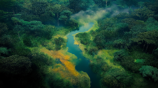 Zobrazit celý detailTapeta bujný les | Hadovitá řeka uprostřed husté vegetace