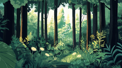 Zobrazit celý detailTapeta bujný les | Zelená lesní krajina s živými květinami