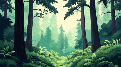 Zobrazit celý detailTapeta bujný les | Světlý podrost s kapradinami a majestátními stromy